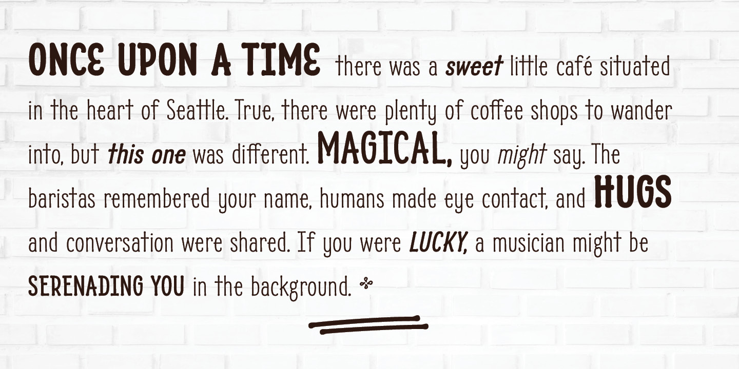 This display font will bring some zest to your logo, signage, packaging design or large titles on book covers or advertising. It is a great combination of an organic, hand drawn feel but still clean and crisp enough to look professional. Enjoy!